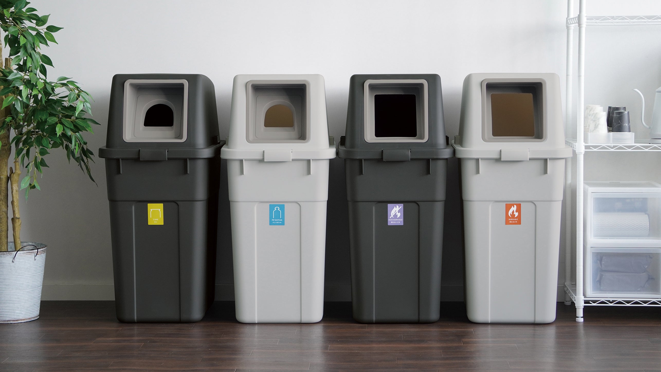 [画像13: https://prcdn.freetls.fastly.net/release_image/61540/39/61540-39-0d4feae2b78df732c790df3eec9e9ba4-2571x1447.jpg?width=536&quality=85%2C75&format=jpeg&auto=webp&fit=bounds&bg-color=fff ]捨てるゴミの種類に合わせてフタが選べるダストボックスの大容量タイプ。