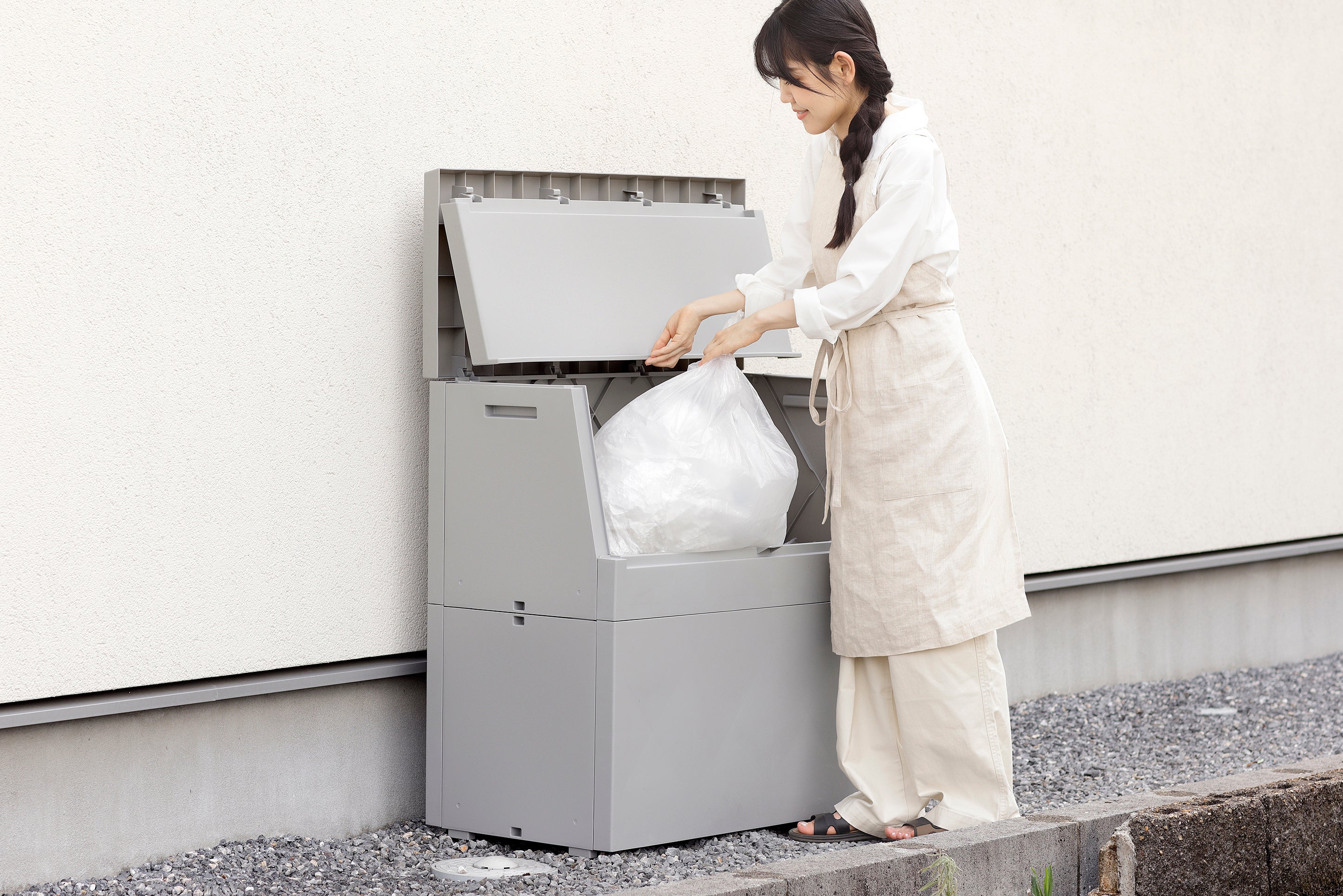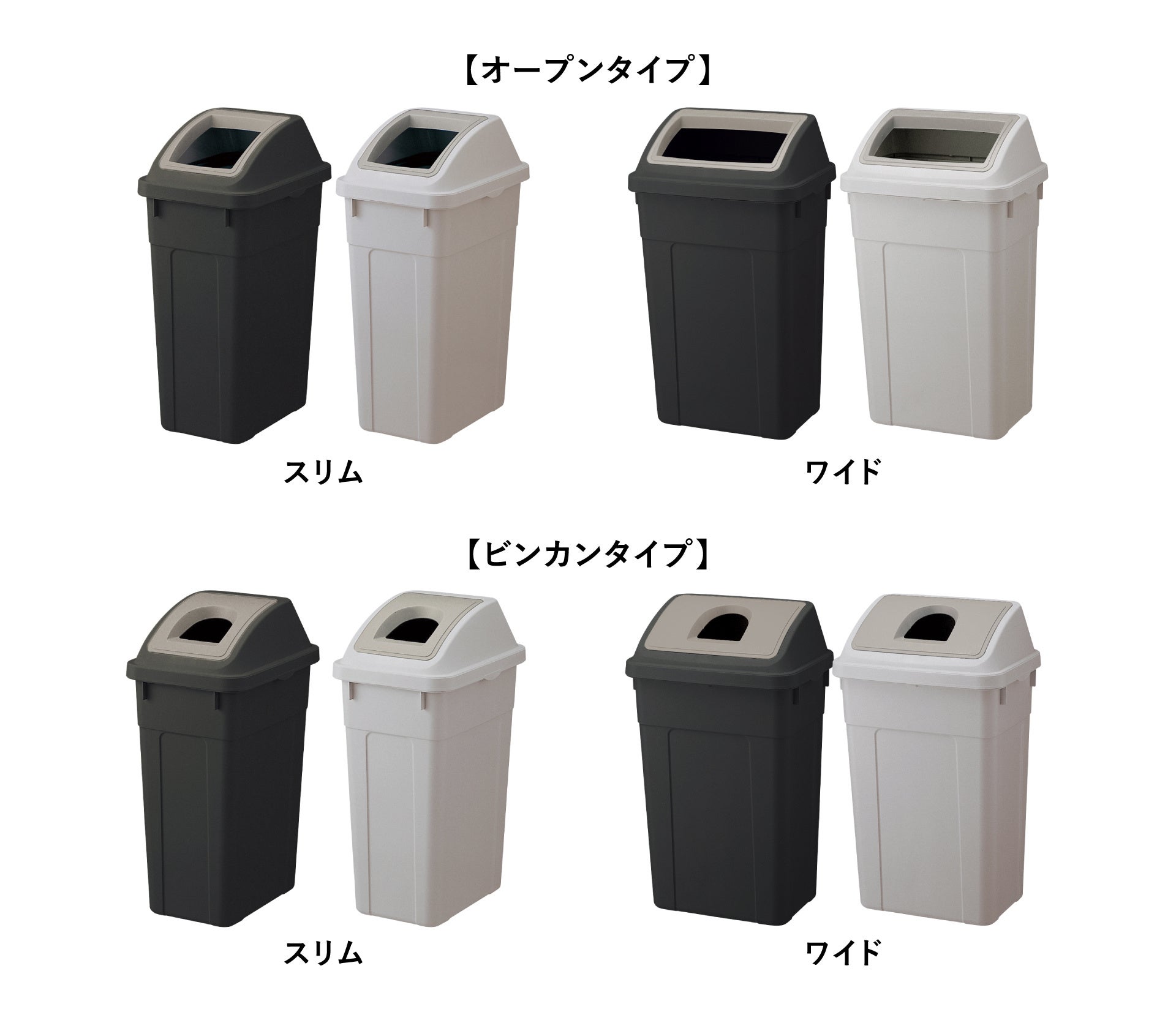 [画像11: https://prcdn.freetls.fastly.net/release_image/61540/39/61540-39-c55f19b2565c1ab648941bce28aaee37-1834x1241.jpg?width=536&quality=85%2C75&format=jpeg&auto=webp&fit=bounds&bg-color=fff ]捨てるゴミの種類に合わせてフタが選べるダストボックス。捨て口が広く様々なゴミに対応できるオープンタイプと、ビンカン用に適した半円状の捨て口のビンカンタイプがあります。