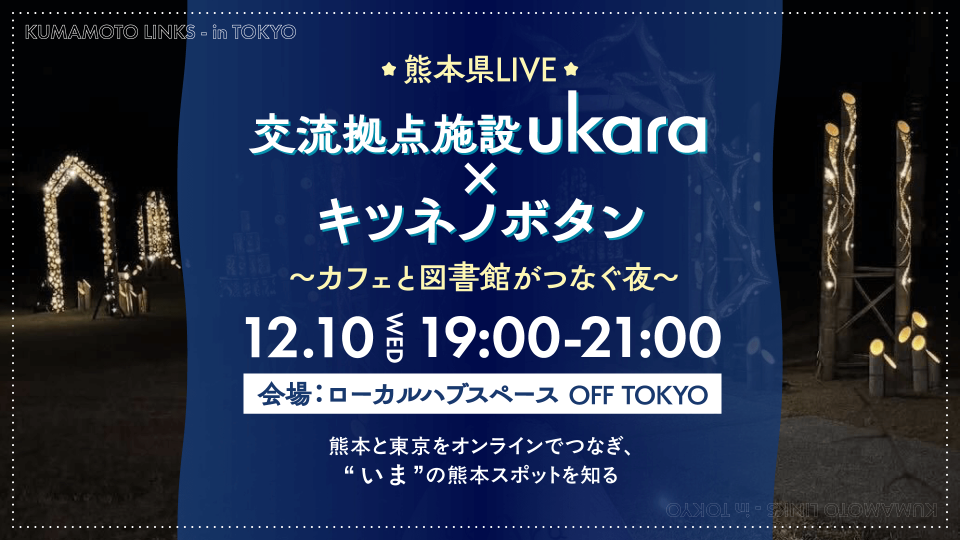 シビレ株式会社(本社:東京都中央区、代表取締役:鈴木翠)は、熊本県からの受託事業として、熊本県内3地域(南関町・熊本市・宇城市)と東京をオンラインでつなぐライブイベントシリーズ「KUMAMOTO LINKS」を、2025年12月より全3回で開催いたします。本企画は、首都圏に住む熊本県出身者や熊本に関心を寄せる方々が、移住やUターンに限らず「熊本と関わり続けるための新しい入口」を見つけることを目的とした取り組みです。