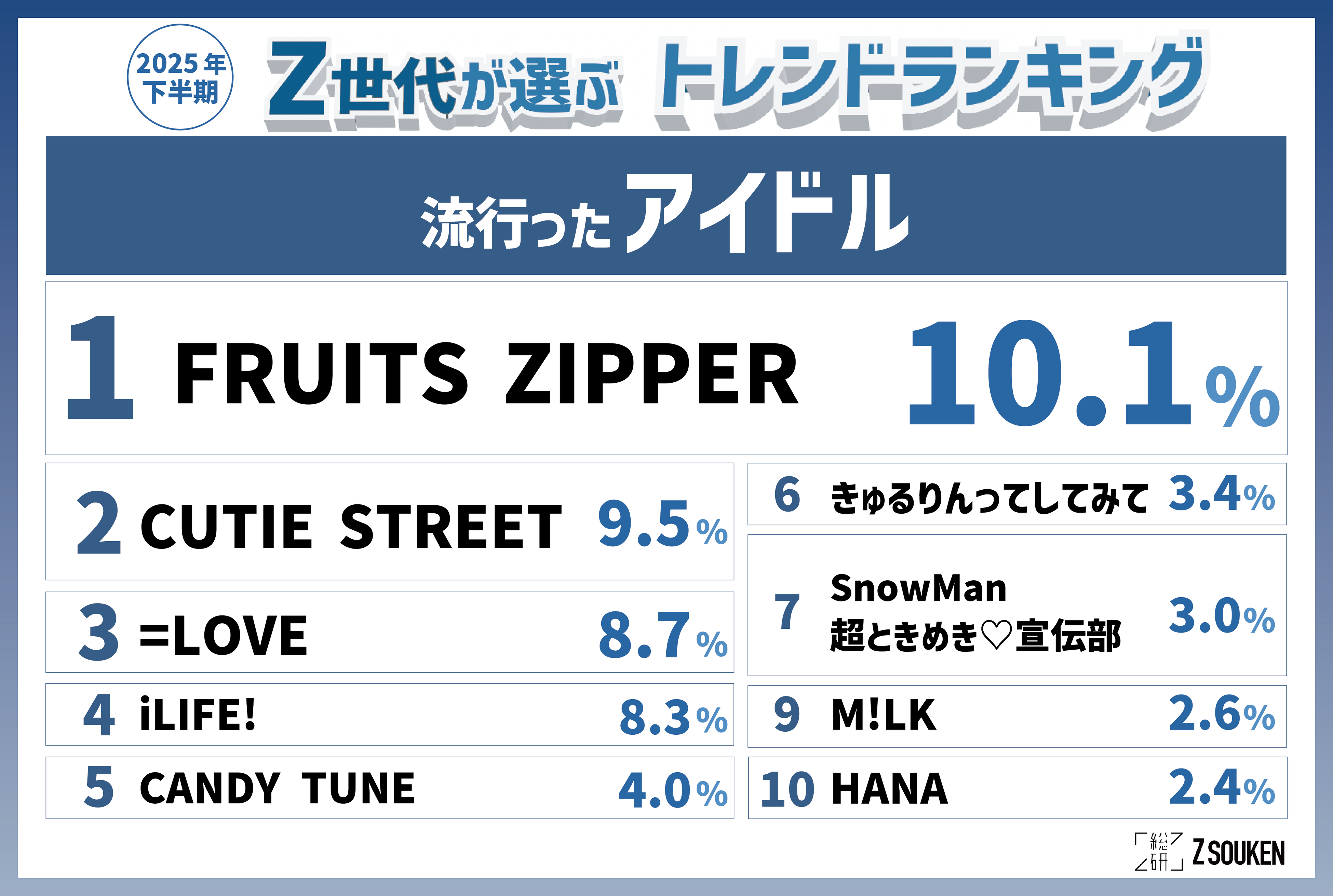 KAWAII LAB.が手掛ける『FRUITS ZIPPER』『CUTIE STREET』、指原莉乃がプロデュースする『=LOVE』など日本のアイドルが上位3位にランクイン!