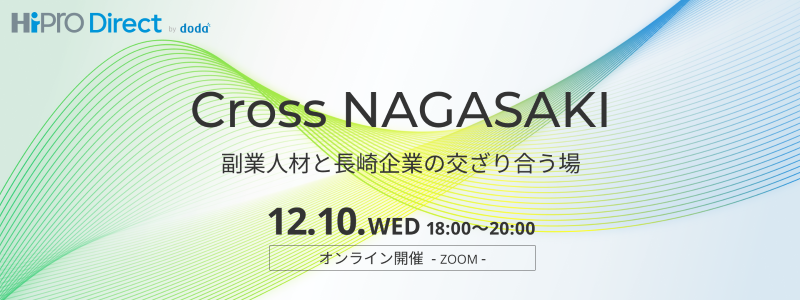 パーソルキャリア株式会社の副業・フリーランス人材 マッチングプラットフォームサービス「HiPro Direct」は、長崎県プロフェッショナル人材戦略拠点を運営する公益財団法人長崎県産業振興財団から委託を受け、事業課題を持つ長崎県内企業5社と、副業・兼業人材をマッチングするオンライン交流会「Cross NAGASAKI」を実施します。なお、交流会は、2025年12月10日(水)18:00から開催します(参加無料)。