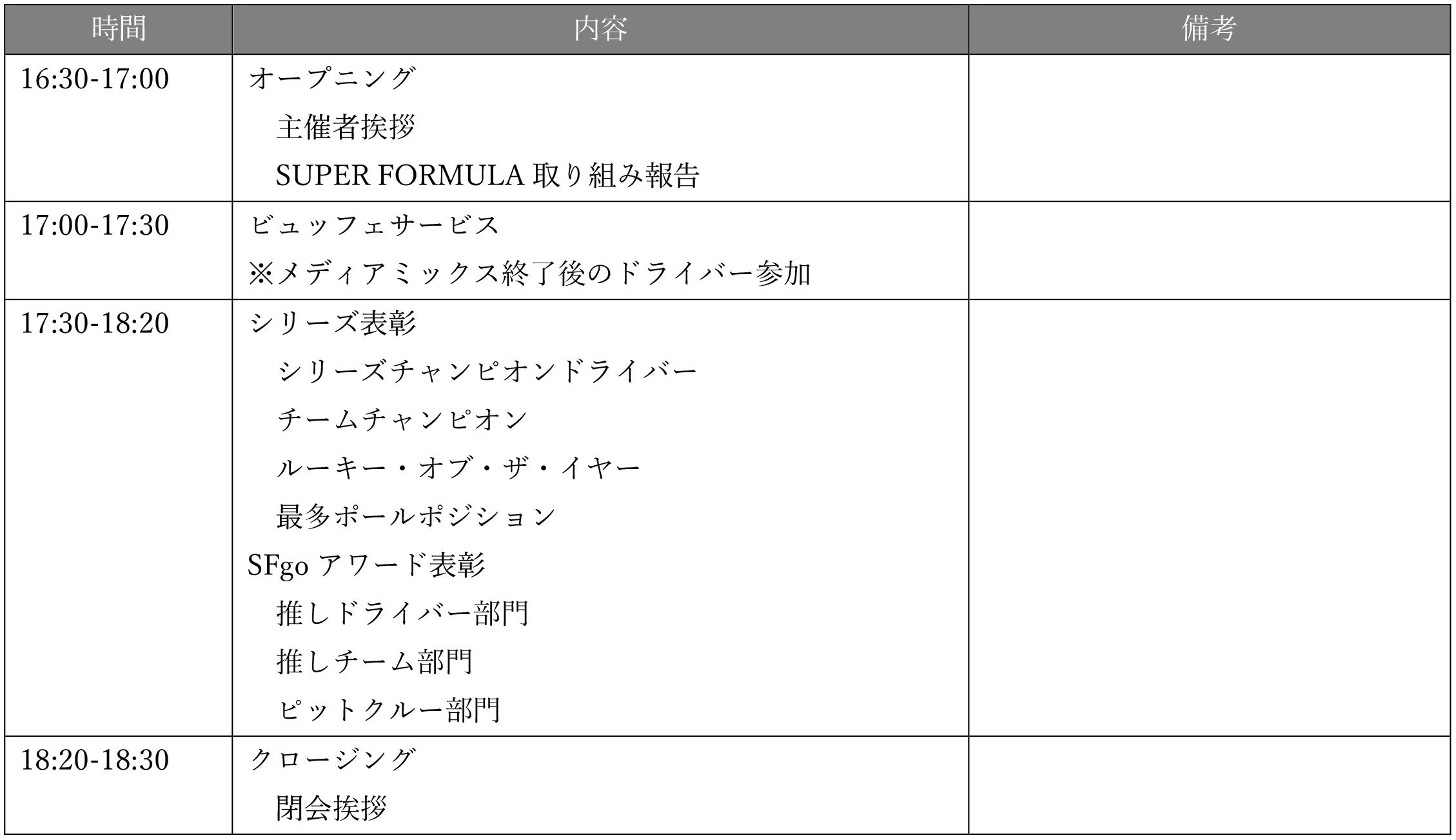※ SUPER FORMULA AWARDSはすべてご取材いただけます