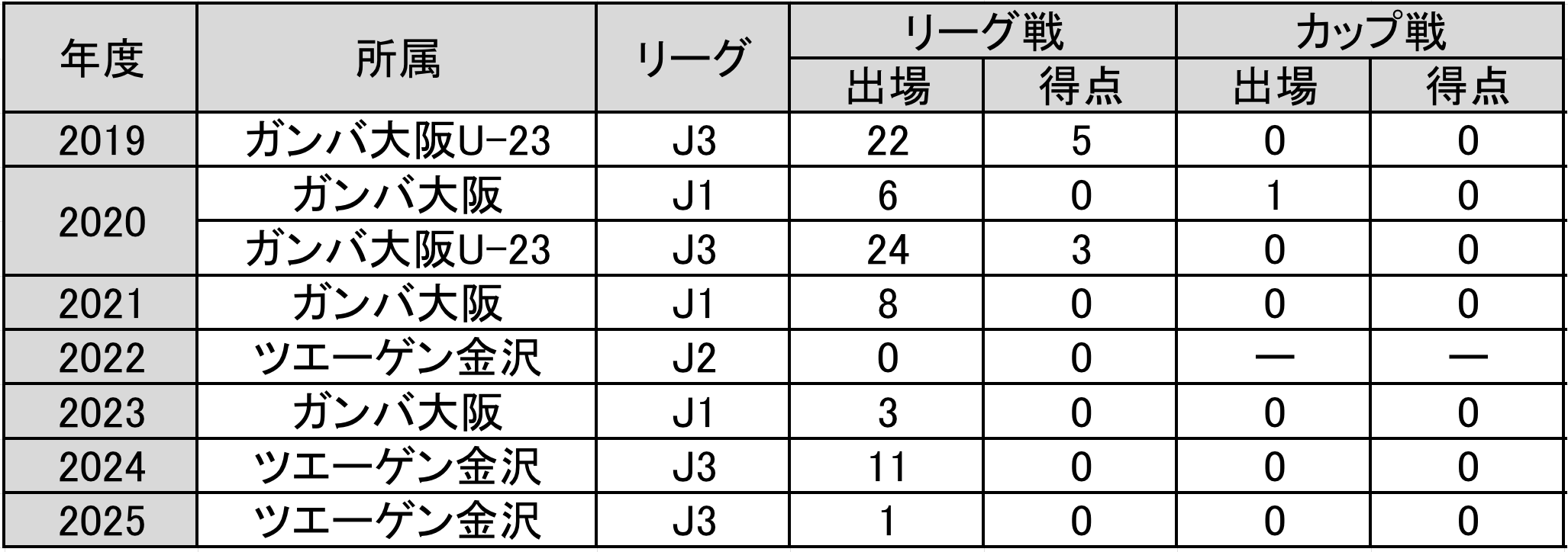 ガンバ大阪ジュニアユース - ガンバ大阪ユース - ガンバ大阪 - ツエーゲン金沢(育成型期限付き) - ガンバ大阪 - ツエーゲン金沢