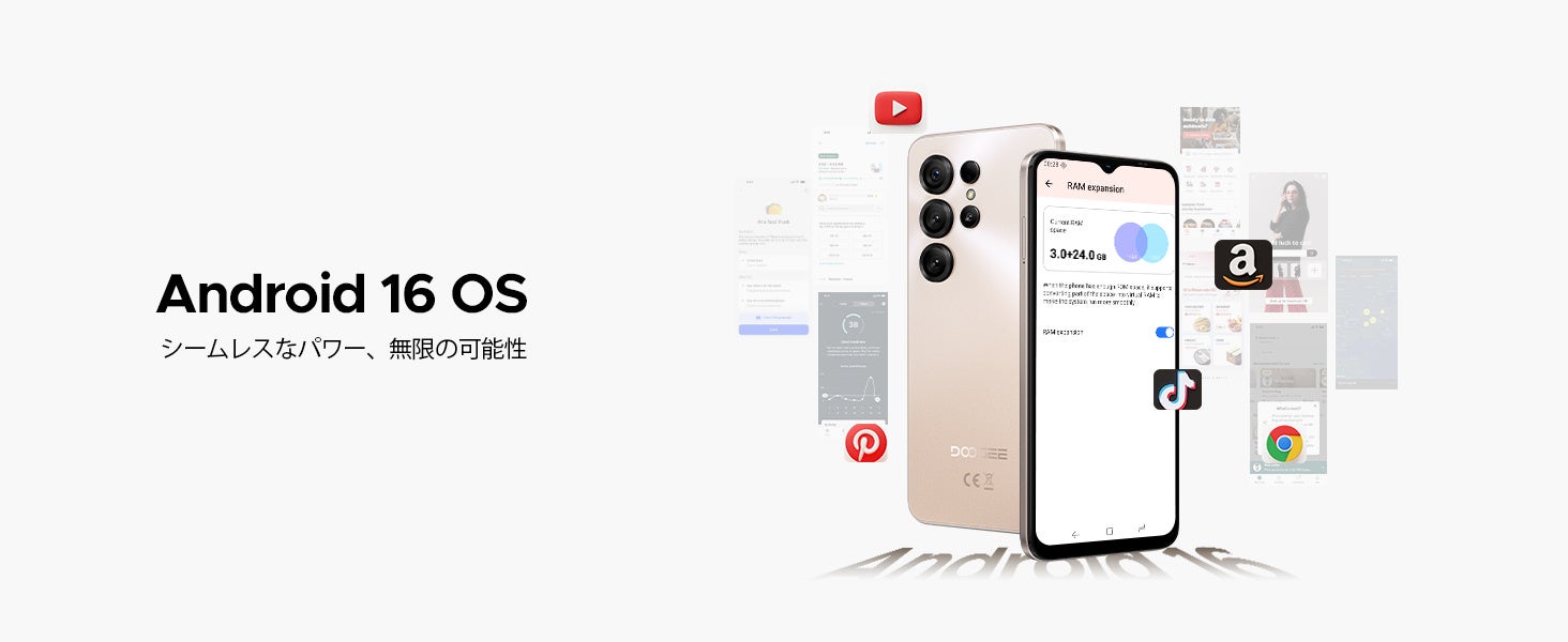 ■OS & 基本性能: Android 16 | UNISOC SC9863A オクタコアプロセッサ | Imagination PowerVR GE8322 GPU | 24GB RAM (3GB+21GB 拡張メモリ) | 64GB eMMC 5.1 ストレージ