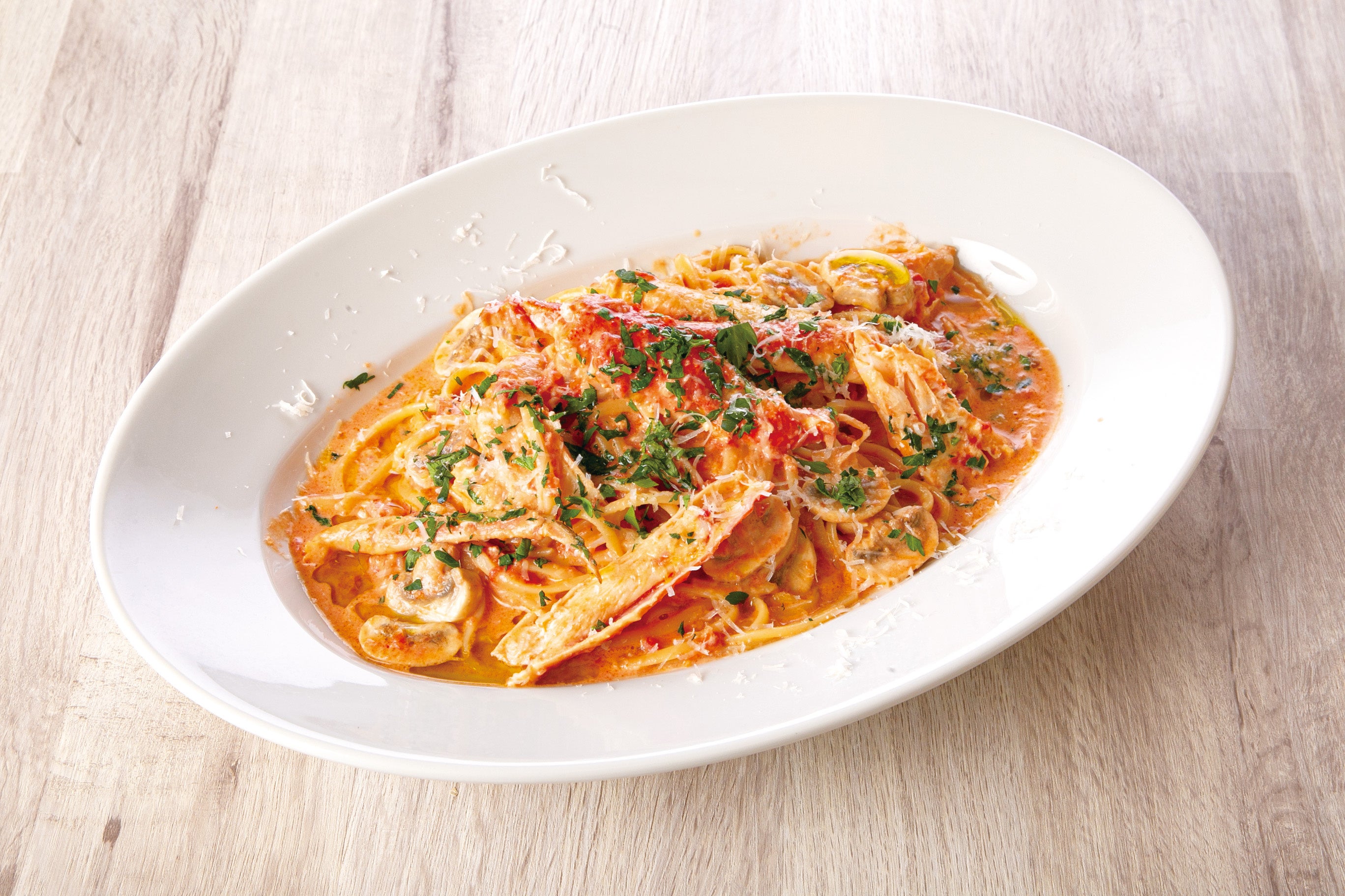 ずわい蟹とマッシュルームのトマトクリームソース リングイネ