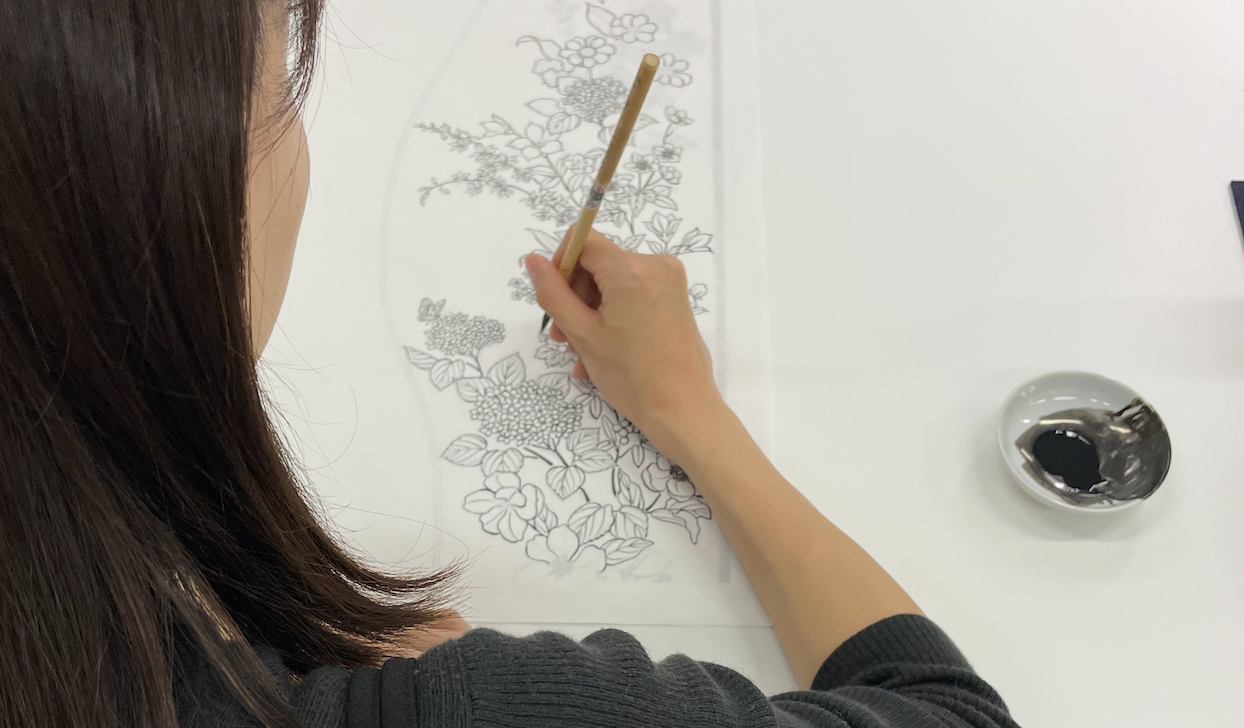 ALISAのコレクションはすべて 100%シルク。京友禅工房や加賀友禅作家、日本画家など、伝統芸術の担い手と共に制作したデザインです。静かに光を含むシルクと、職人の筆致が息づく友禅柄。その贅沢な質感を、実際に触れながらお選びいただけます。