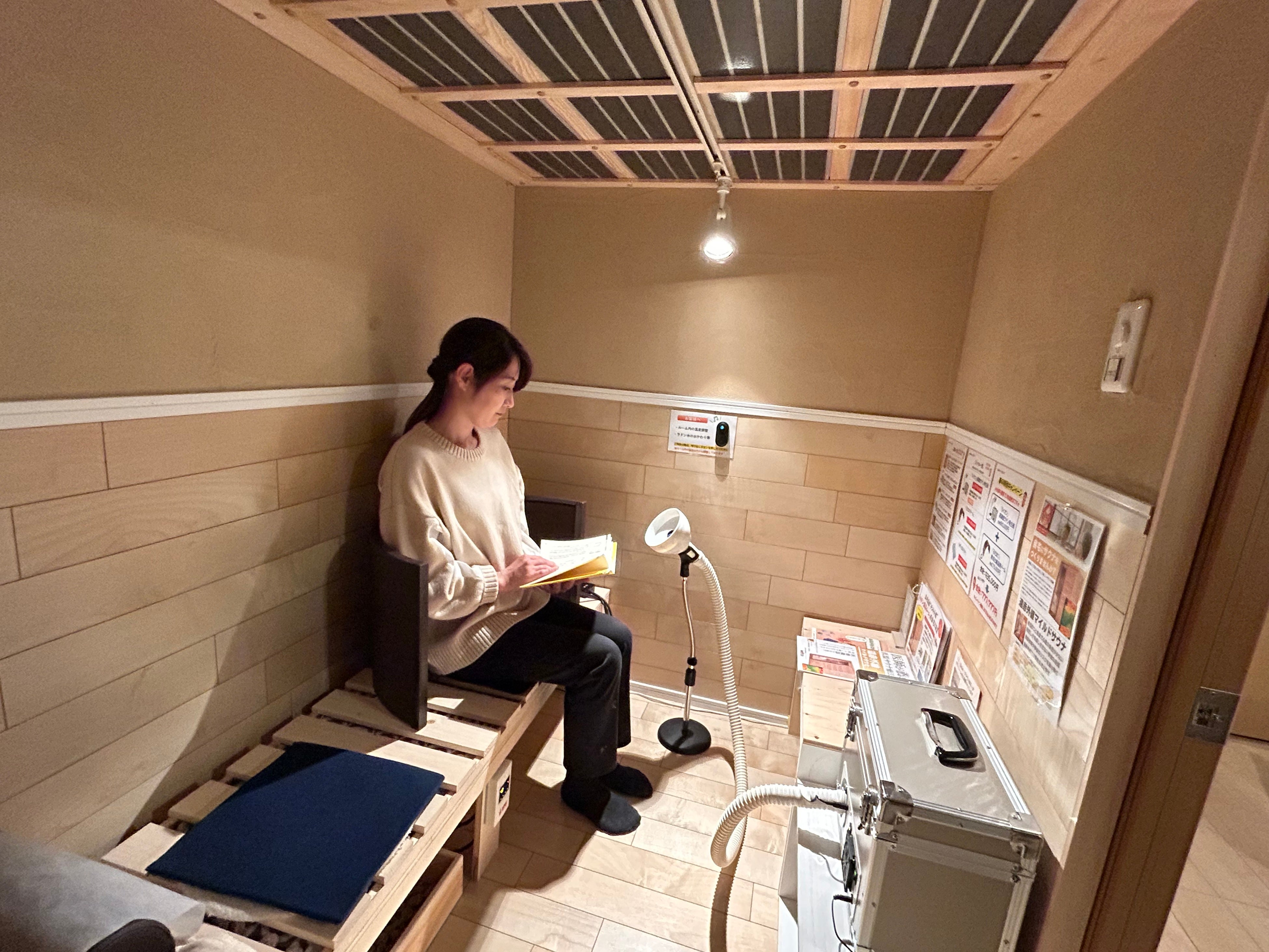 ベンチルームは膝や腰に痛みを持つお客様に好評。ベンチの中にも遠赤外線シートが入っています。