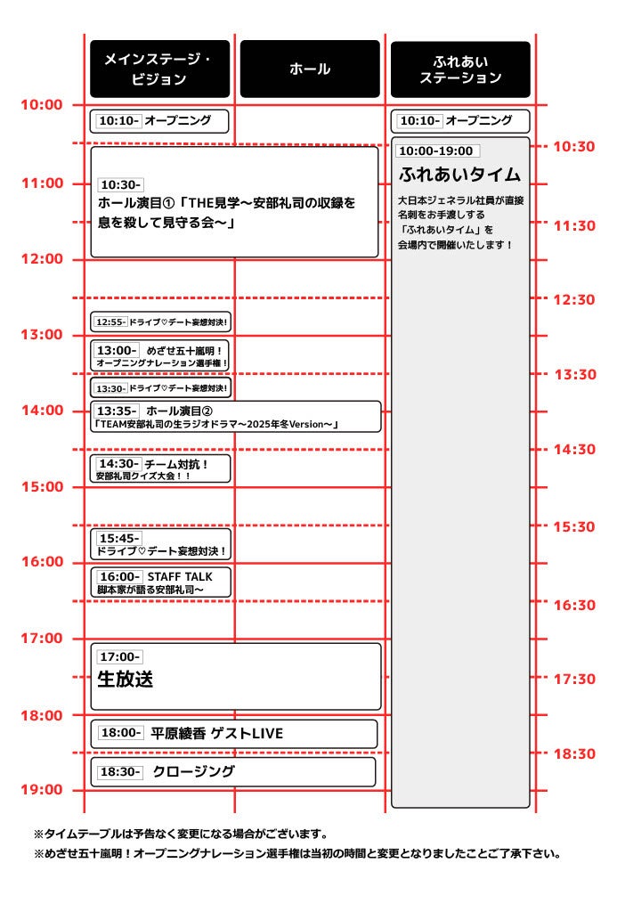 なお、会場で実施するその他の企画は、今後『NISSAN あ、安部礼司』(毎週日曜17時~放送)の中で順次発表していきます。詳細は、イベントHP(https://www.tfm.co.jp/abe/event2025/)をご確認ください。