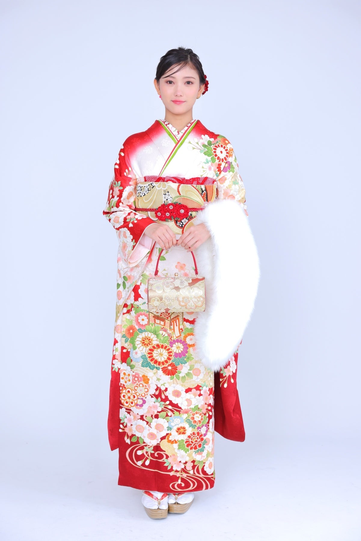振袖の華やかさを引き立てる、品格あるフォルムとカラーリング。