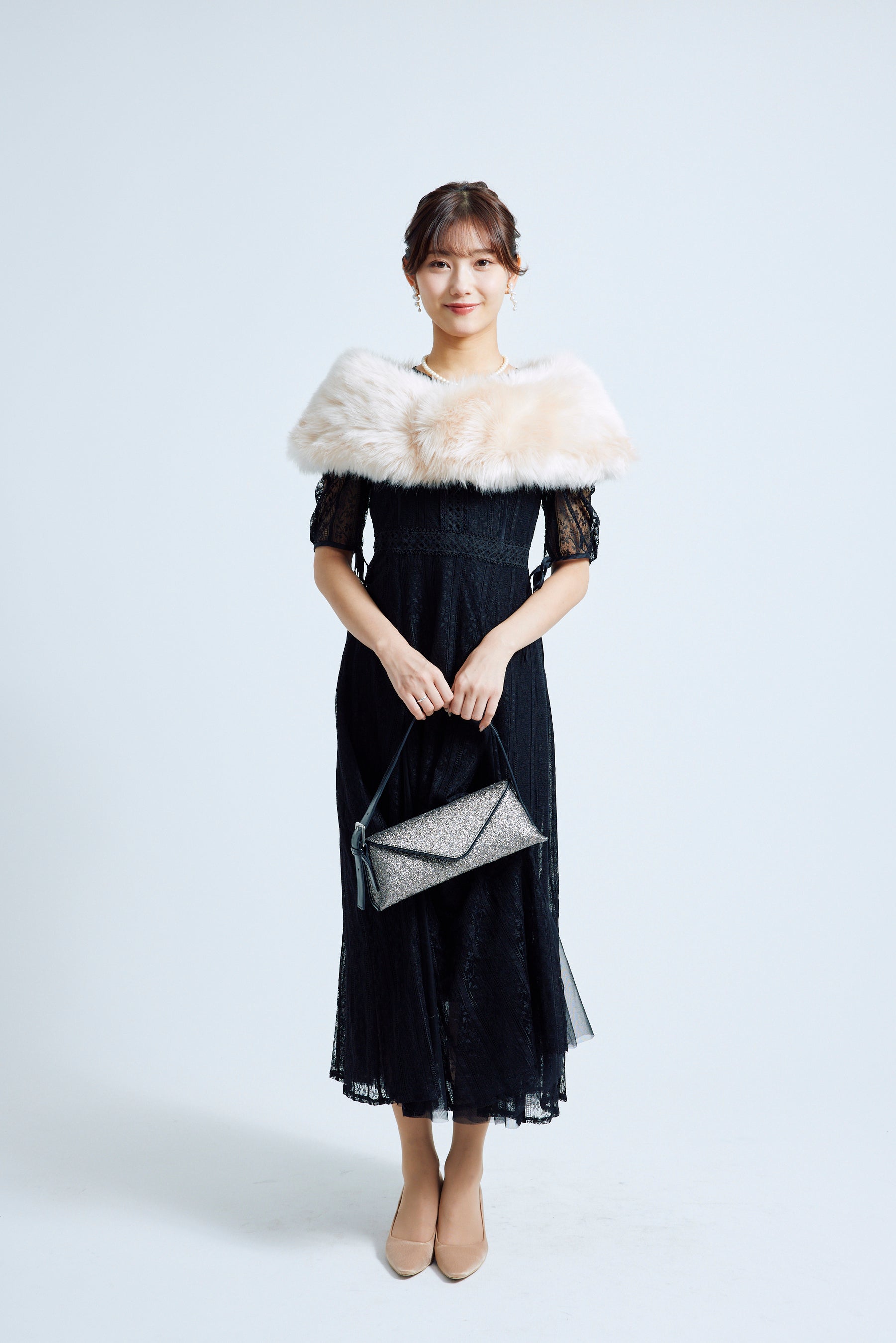 国内工場で丁寧に仕立てられたショールは、立体感と存在感を備え、天然毛皮に匹敵する保温性も実現しています。