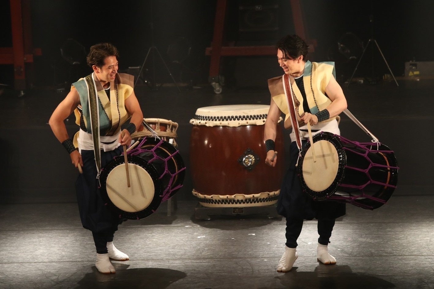和太鼓兄弟ユニット「は・や・と」の敬大・由大が、新しい年の門出を祝う演奏を披露。力強く息の合った太鼓の響きと、時に笛が奏でる凛とした音色が、会場を熱く華やかに包み込みます。
