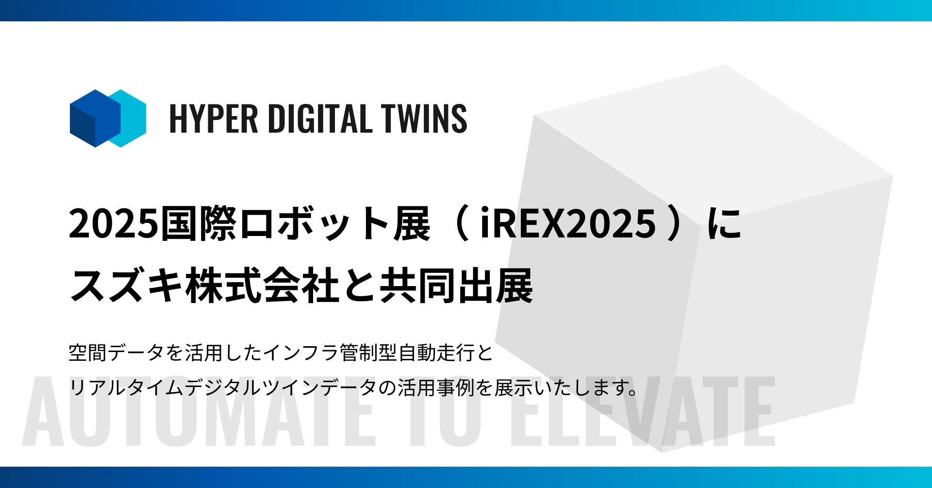 株式会社ハイパーデジタルツイン(本社:東京都中央区、代表取締役:伊東敏夫、以下:HDT)は、2025年12月3日(水)より東京ビッグサイトで開催される世界最大規模のロボット専門展「2025国際ロボット展」に出展いたします(リアル会場小間番号 : E7-33)。