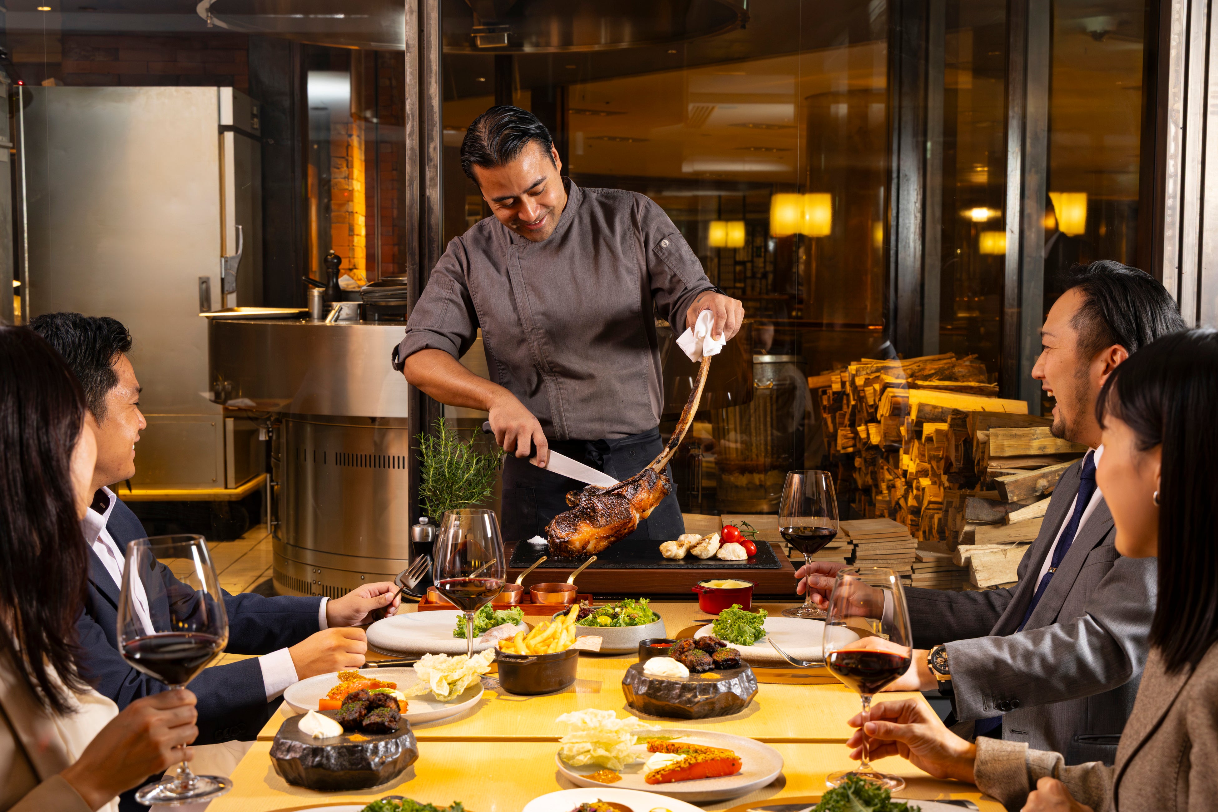 【2025年12月1日】ヒルトン東京(新宿区 総支配人フィリックス・ブッシュ)2階「メトロポリタングリル」では、2026年1月5日(月)より、大型グリルカウンター前の特等席を確約し、1日1組限定で約2kgの牛脂熟成国産トマホークステーキを中心にお楽しみいただくパーティープラン「ザ・トマホークテーブル」をお1人様 ¥15,000(ご利用は4名様~)にてご提供いたします。本プランには、前菜3品に加え、芳醇な香りが広がる「燻製ボーンマローのポテトピューレ」や、「アスパラガスのグリル レモン、ブラックガーリックアイオリ」など、グリル料理を引き立てるサイドディッシュもセットに。目の前の大型グリルカウンターで焼き上がるライブ感とともに、メトロポリタングリルならではのダイナミックな食体験をお楽しみいただけます。