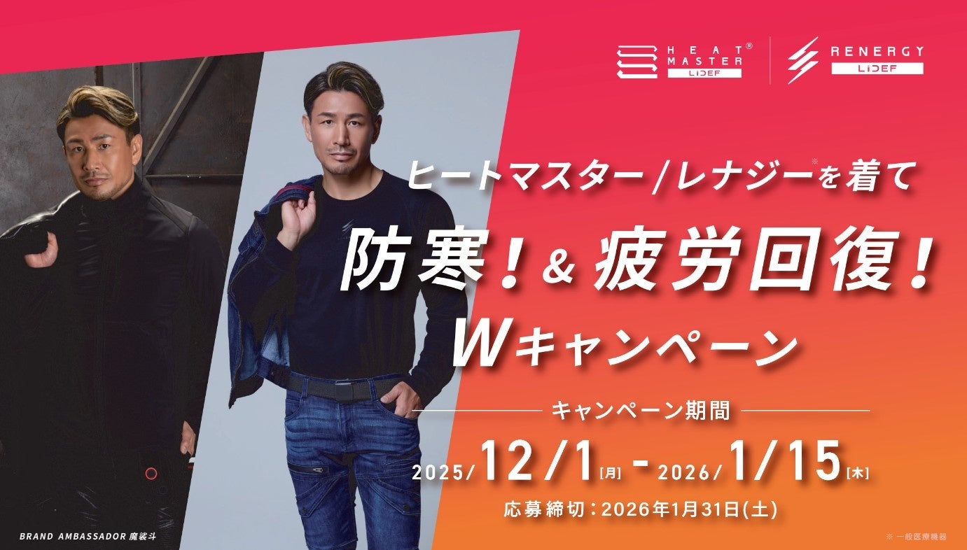 “喜びを企画して世の中を面白くする”商品を流通させる株式会社リベルタ(本社:東京都渋谷区、東証スタンダード:4935)の機能衣料ブランド「LIDEF」が展開するヒートマスター、レナジーにて【ヒートマスター/レナジーを着て防寒!&疲労回復Wキャンペーン】を開催いたします。