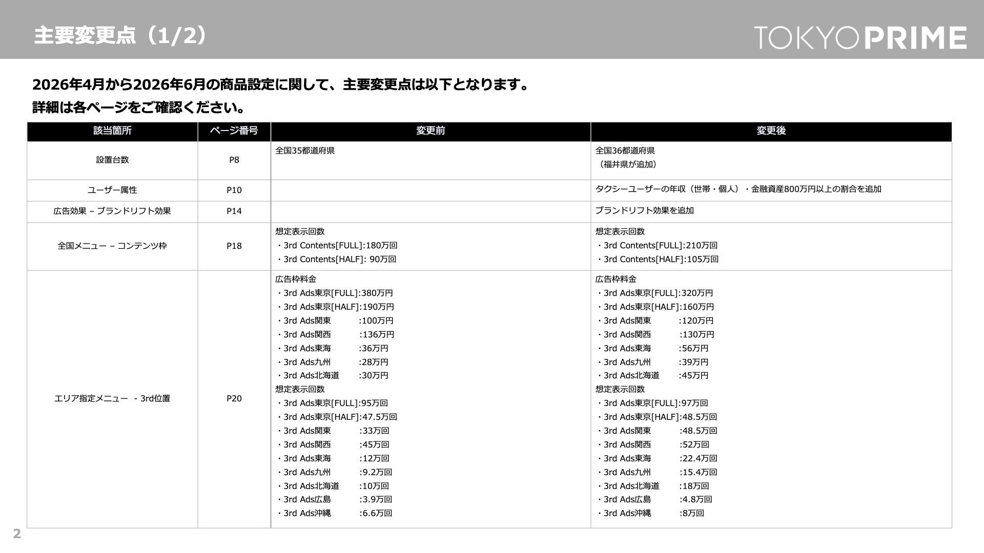 日本最大(※)のタクシーメディア「TOKYO PRIME」を運営する株式会社IRIS(本社:東京都港区、代表取締役:眞井 卓弥・戸田 鉄平、以下IRIS)は、本日2026年4月-2026年6月の「TOKYO PRIME」媒体資料を公開しました。