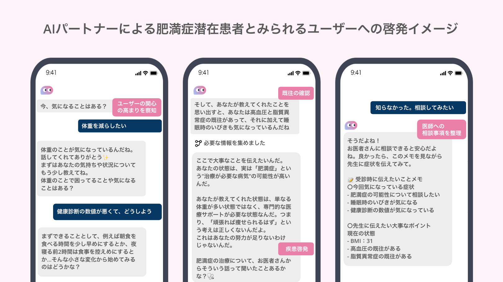 肥満症は、単なる体重増加ではなく、高血圧や糖尿病などの健康障害を合併する、専門的な治療を要する疾患です。しかし、国内においては「自己責任の課題」といった社会的偏見から受診をためらう患者さんが少なくなく、また治療を開始しても食事・運動療法などを継続することが難しいという課題(*)がありました。また、医療現場においても、多忙な中で患者さん一人ひとりの生活習慣にまで踏み込んだ継続的な支援を行うことには限界があり、新たなアプローチが求められています。今回のAIパートナーの取り組みは、UbieのAI技術と亀田総合病院が持つ国内トップクラスの臨床知見を掛け合わせたものです。
