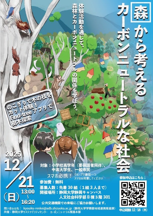 静岡大学では、サステナビリティセンター、カーボンニュートラル推進本部共催による「森から考えるカーボンニュートラルな社会」を下記のとおり開催します。