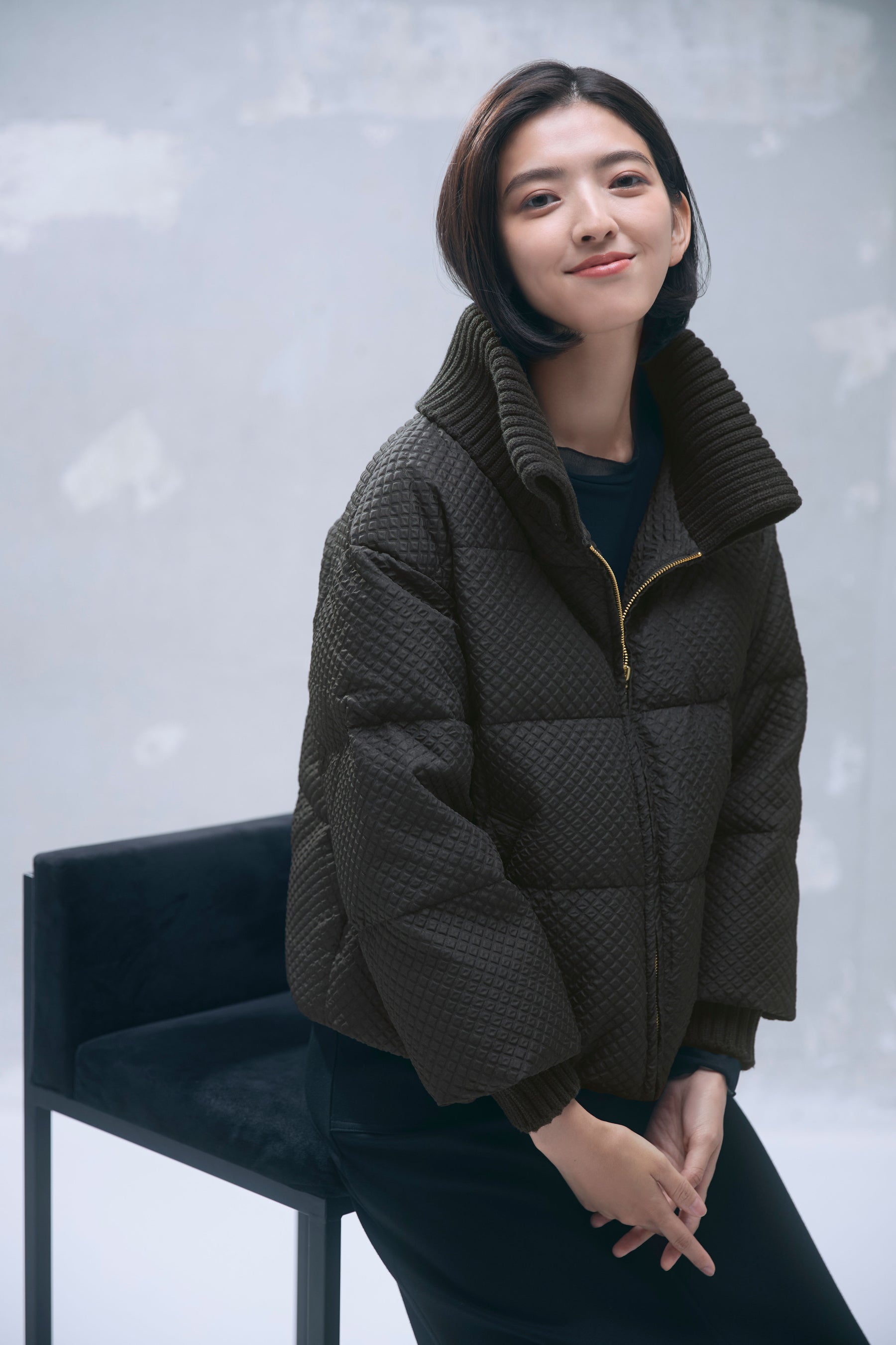 衿と袖口にリブをあしらい、衿を広げたり立てたりできるスタイリッシュなダウンジャケットは、人と差がつくデザイン。軽くて暖かいのは大前提で、シルエットの美しさで着やせも叶う今シーズンの本命!