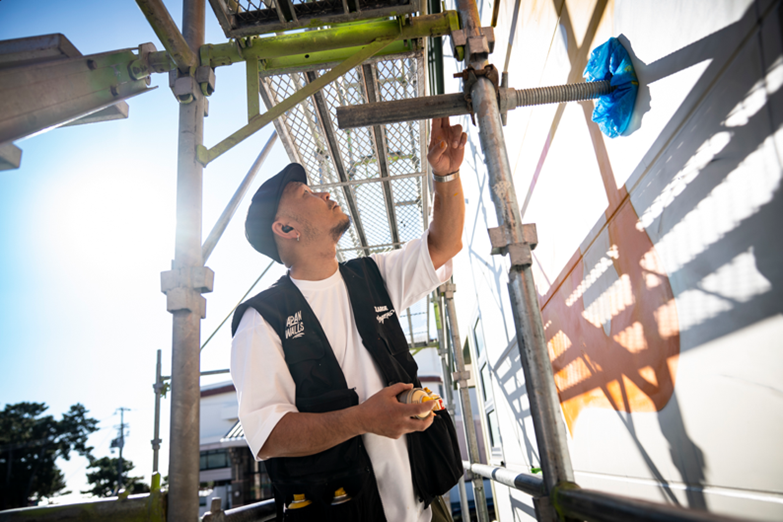 制作中には、近隣の住民が足を止めて2人の作業を見上げる姿もしばしば見られました。松本氏は、「普段ギャラリーに足を運ばない方にも作品が届くことが、壁画制作ならではの魅力」と語り、中山氏も地域の方からかけられた感謝の言葉を受け、「アートが人を笑顔にする瞬間が嬉しい」と振り返りました。