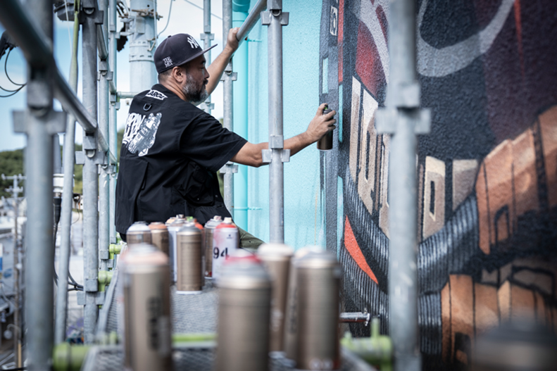 グローバルに活躍するNY拠点のアーティスト Dragon76氏、ハワイ出身のJack Soren氏をはじめ、合計11組のアーティストが白浜に集結し、海辺の町を舞台に各地の壁面で多様なスタイルのアートが織り成されました。