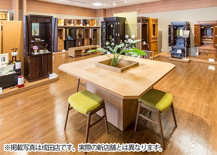 新店舗では、伝統的なお仏壇から現代のライフスタイルに合わせたコンパクトなお仏壇、お仏具、お線香、お数珠など、幅広い商品を取り揃えております。