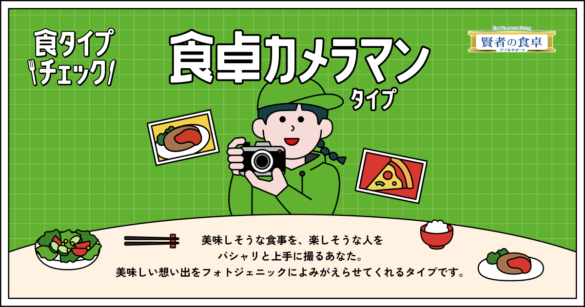 たった20問の食事に関する質問に答えるだけで、あなたが“食卓でどんなふうに活躍するタイプ”なのか、そして“いまの食事に対する気分”がわかります。キャラクターは全8タイプ!