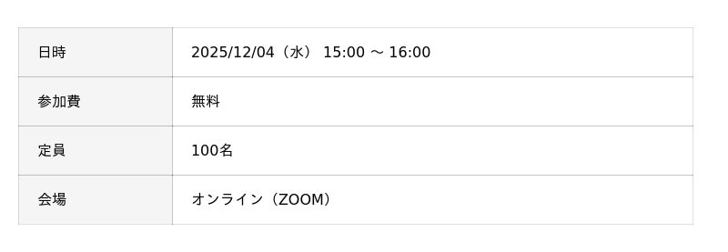 [表: https://prtimes.jp/data/corp/108457/table/89_1_b9351cc7a6c82bda2146190c4dccba47.jpg?v=202512010417 ]