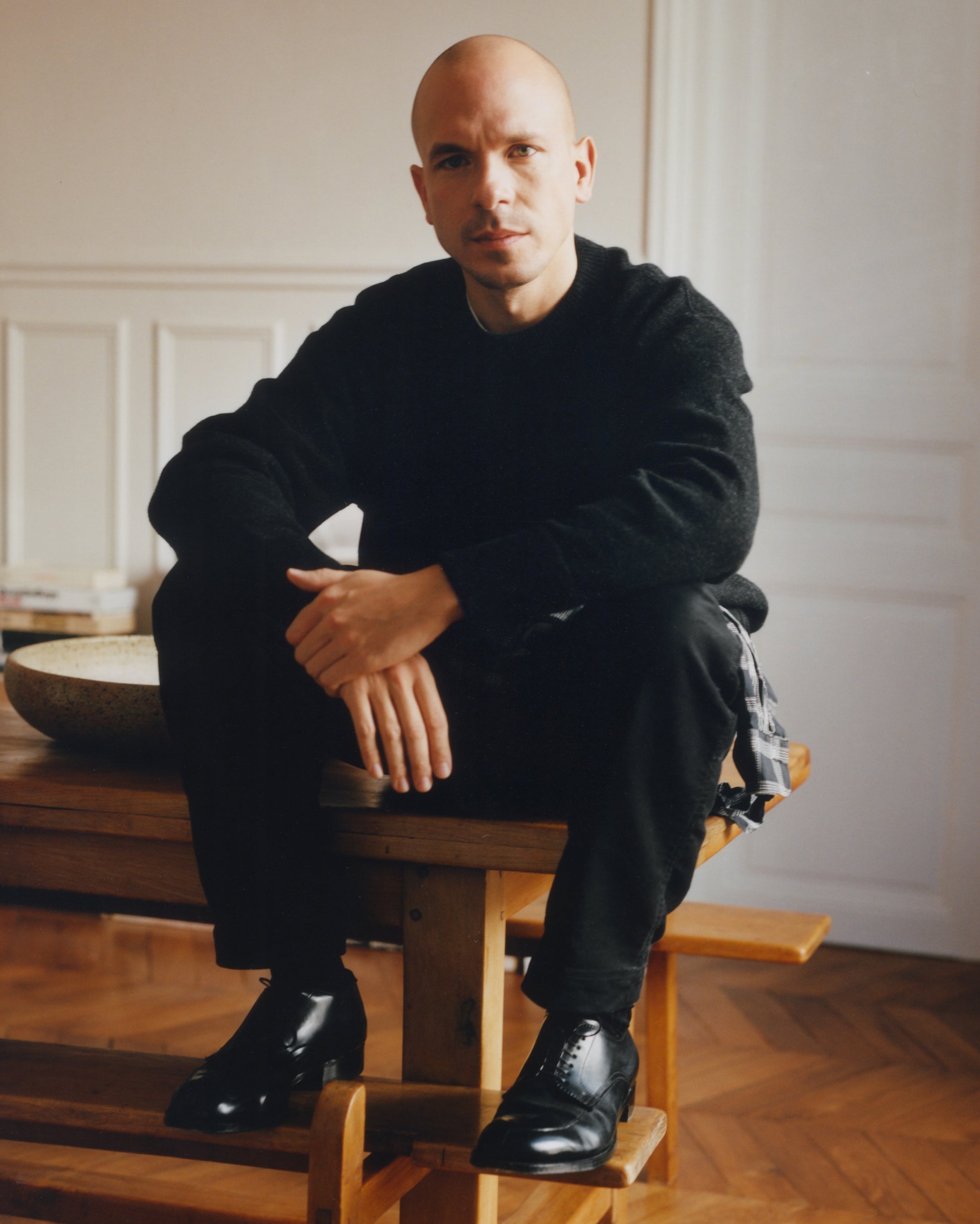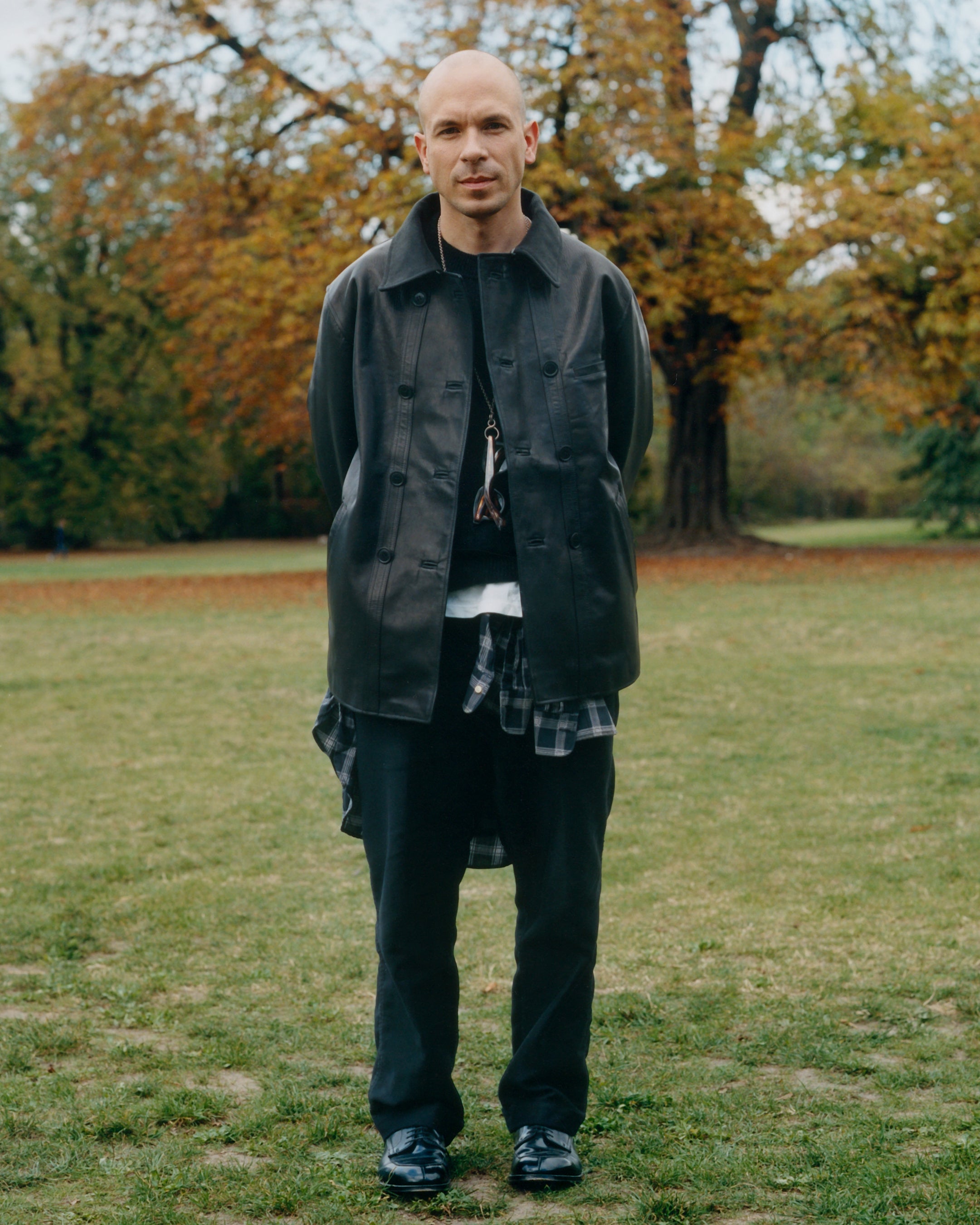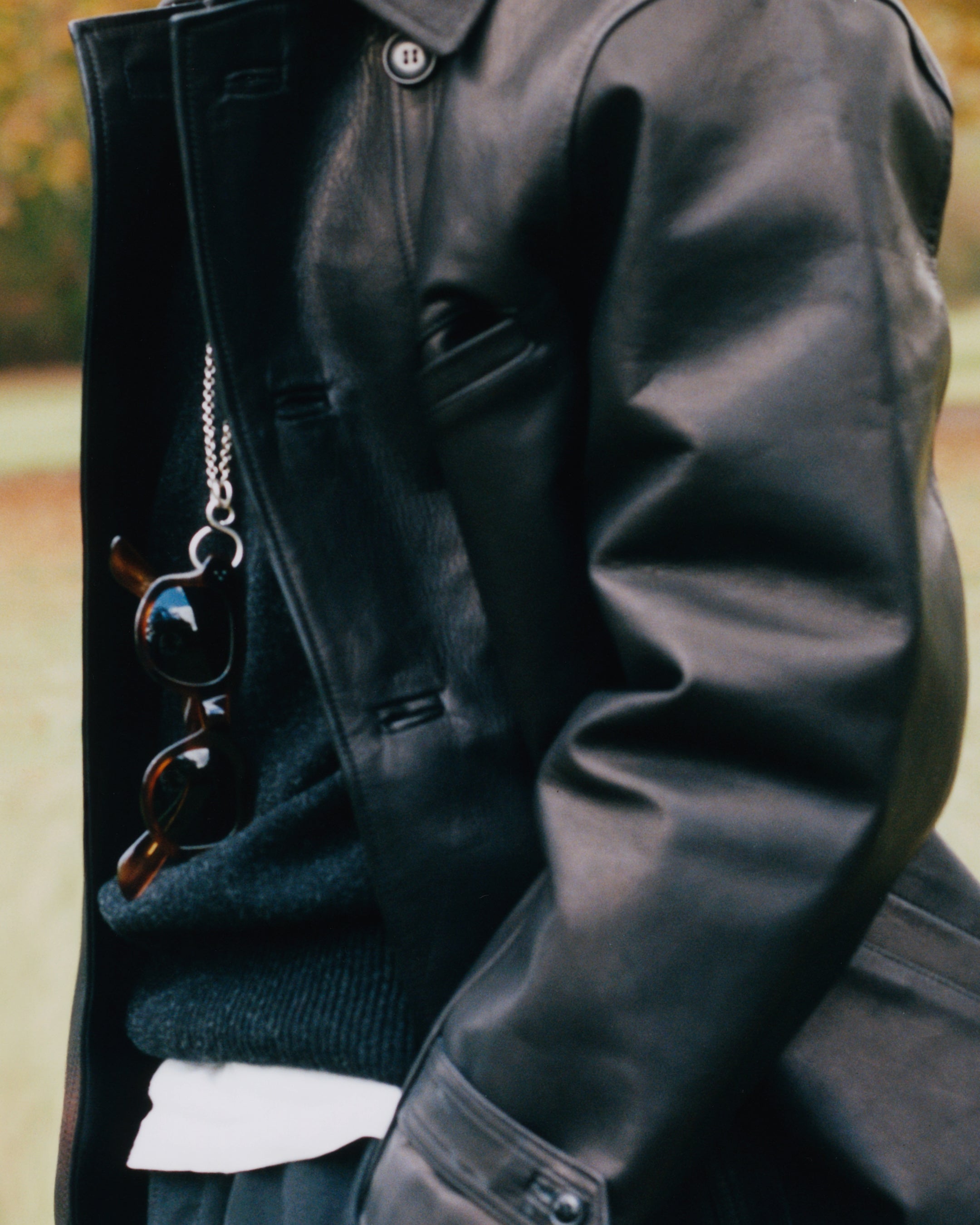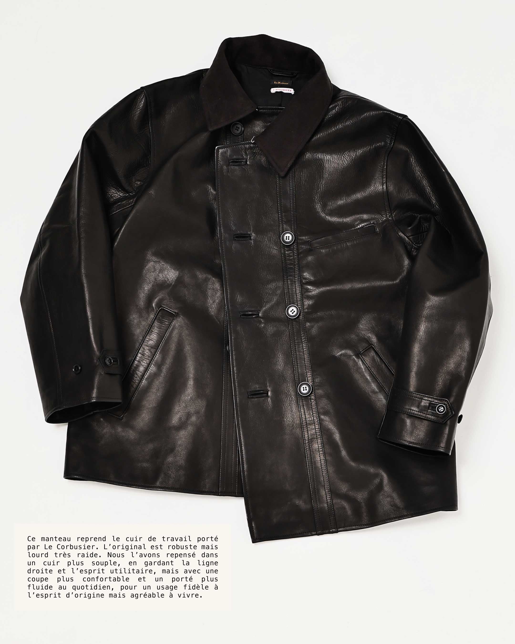 ジャケットは建築家のル・コルビジェが愛用したレザージャケットをベースに作成。
