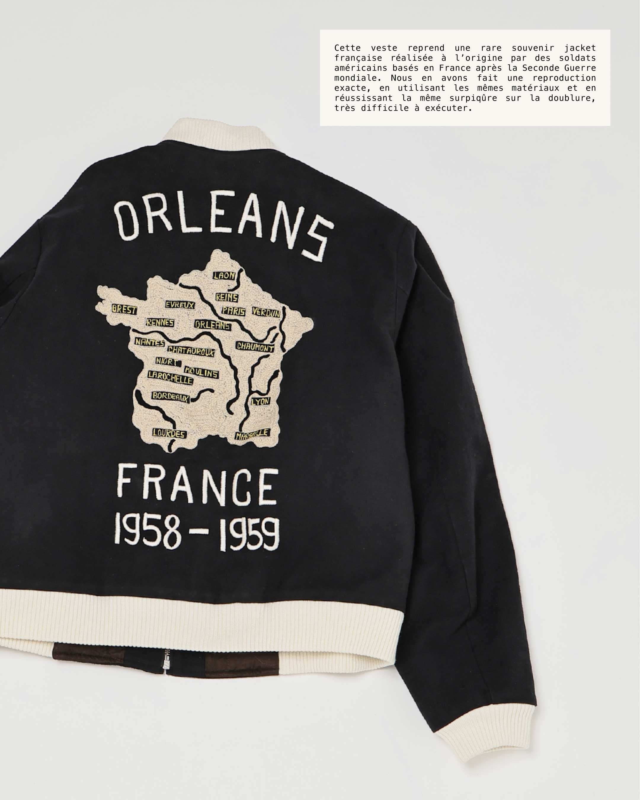 第二次世界大戦後、フランスに駐留していたアメリカ兵によって作られた希少なフランスのスーベニアジャケットをベースに作成。