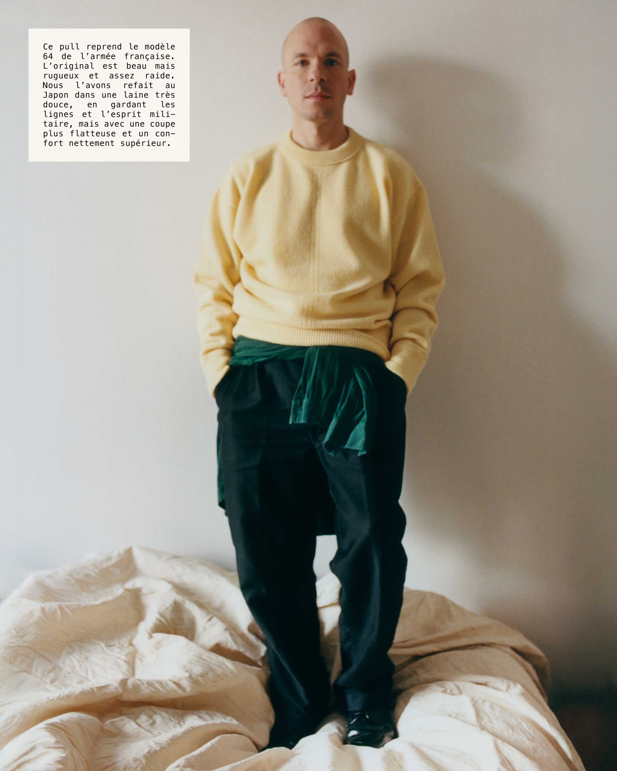 その特徴的なラインやミリタリーの精神を残したまま、日本の非常に柔らかなウールを使って再構築し