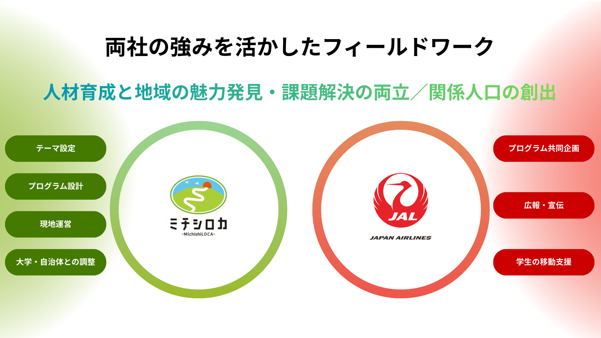 両社が掲げる「学生と地域をつなげる」という目的が共通していることから、今回の連携が実現しました。CCSが担うフィールドワークの企画・運営と、JALが持つ移動や広報の強みを掛け合わせることで、次世代の人材育成と地域活性化をより強力に推進する体制を構築します。