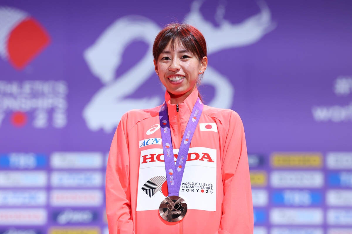 東京2025世界陸上競技選手権大会において女子20km競歩で日本記録を更新し、銅メダルを獲得した。これまで世界との差が大きい種目とされてきた女子競歩において、オリンピック・世界選手権を通じたメダル獲得は初の快挙である。今シーズンは日本記録を2度更新し、年間を通して高いパフォーマンスを発揮した。