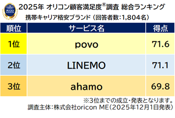 2025年 オリコン顧客満足度(R)調査 携帯キャリア格安ブランド (https://life.oricon.co.jp/rank-mobile-carrier/reasonable/)
