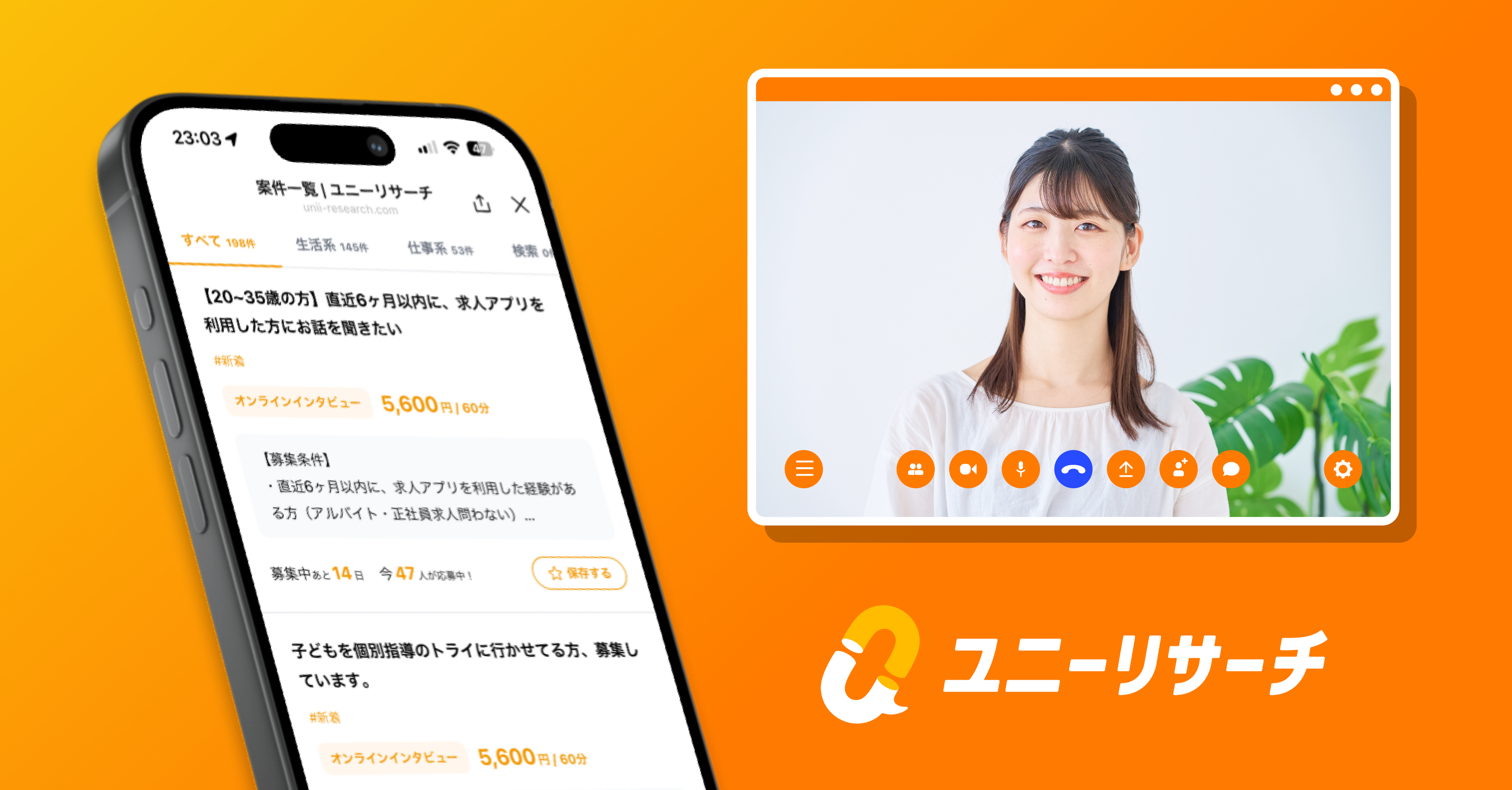 当社が提供する「ユニーリサーチ」は、最短当日・従来調査会社の10分の1以下のコストでユーザー調査が可能な国内最大級のダイレクトリサーチプラットフォームです。