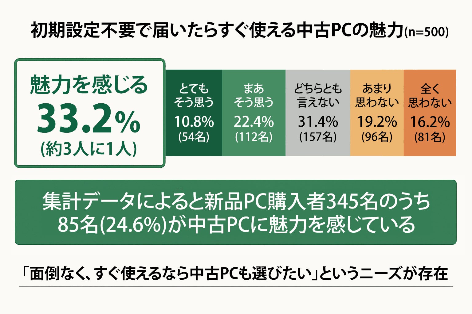 「初期設定不要なら中古PCもあり」3人に1人が魅力を感じる
