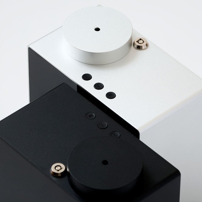 高級感のあるアルミボディを採用(シルバー・ブラックの2色展開)。一見するとスタイリッシュなデジタル時計のようなデザインです。