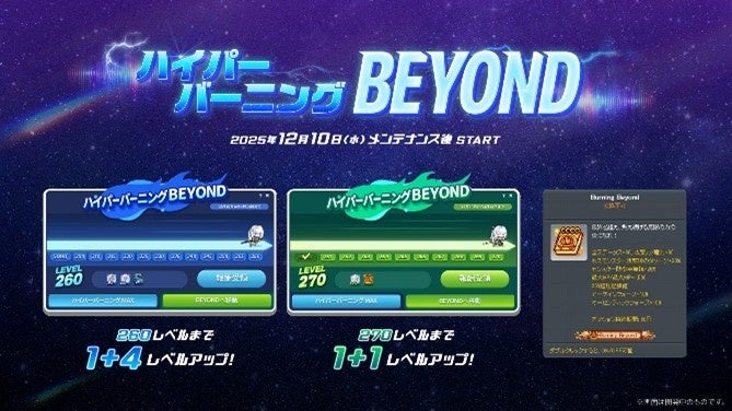 新職業「レン」の実装にあわせ様々な成長支援イベントを開催します。キャラクターを一気に成長させるための様々な特典を提供する期間限定ワールド「チャレンジャーズワールド シーズン2」をオープン。また、Lv260まで1+4レベルアップ、Lv270まで1+1レベルアップする「ハイパーバーニングBEYOND」が新たに登場します。従来のキノコパスをさらにアップグレードし、Lv280までサポートする「ハイパーキノコパス」や、ミッションクリアでLv200までの成長をサポートする「テラブリンク」も合わせて開催します。