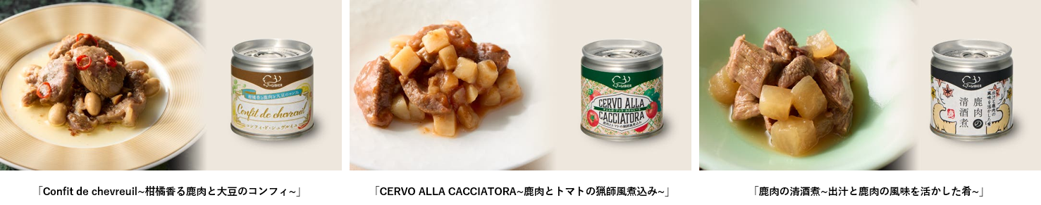 東洋製罐グループホールディングス株式会社(本社:東京都品川区、代表取締役社長:中村琢司)は、辻調理師専門学校(本部:大阪市、理事長:辻芳樹)と日本ジビエ振興協会(本部:長野県、代表理事:藤木徳彦)と共同で、レトルトでジビエの可能性を引き出す「+GIBIERプロジェクト(プラスジビエプロジェクト)」を始動しました。本取り組みは、2021年に辻調理師専門学校と共同で発足し、2024年9月に発表した、食を通じた社会課題解決を目指す「+Recipeプロジェクト(プラスレシピプロジェクト)」※1の中で、ジビエに特化して展開するものです。そして本日、約3年間の研究開発を経て誕生した 「長野のジビエ三種缶」を、クラウドファンディングを通じて販売開始しました。食材を常温で長期保存可能とするレトルト技術を応用し、野生鳥獣の利活用という社会課題の解決を目指し、プロジェクトを推進していきます。
