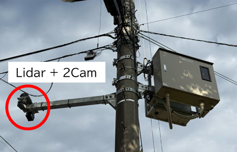 路側スマートポールは、既設柱に路側センサ(3次元レーザレーダ(LiDAR)およびカメラ)と、遠隔型自動運転バスと共通の3次元地図、処理装置、ローカル5G通信端末を装柱し、自動運転車両および遠隔監視拠点、路側センサ統合との情報送信、NTT東日本拠点でのデータ蓄積および解析を閉域接続で行うシステムを指します。