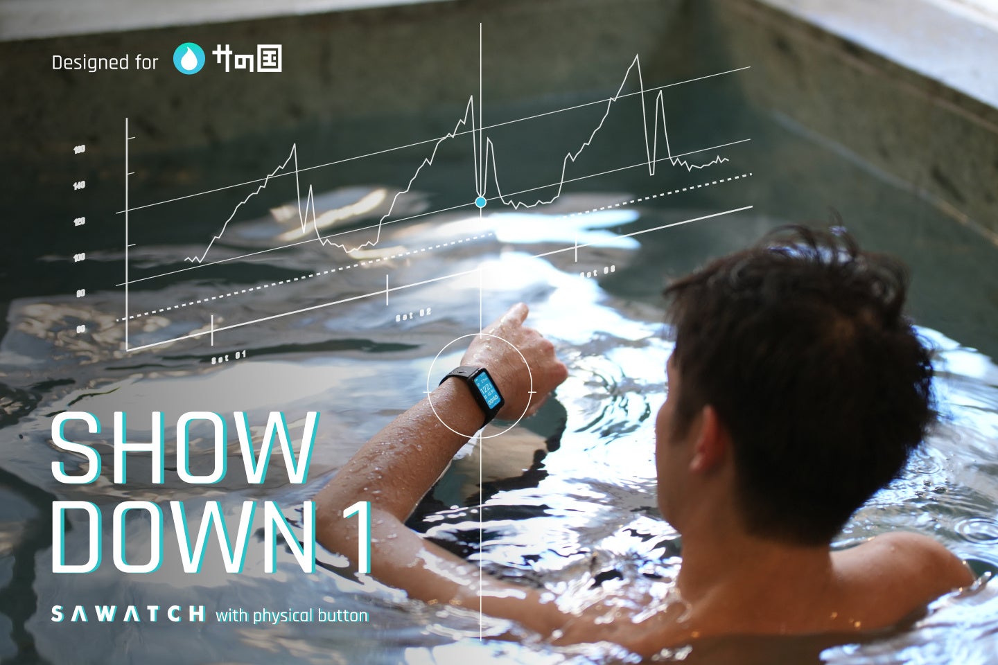 世界初のサウナ専用腕時計型ウェアラブルデバイス『サウォッチ: SHOWDOWN 1』は、サウナ中の心拍や自律神経の反応をリアルタイムで計測し、サウナ特有の爽快感であるととのうを「ととのい値」として可視化するサウナ特化型デバイスです。