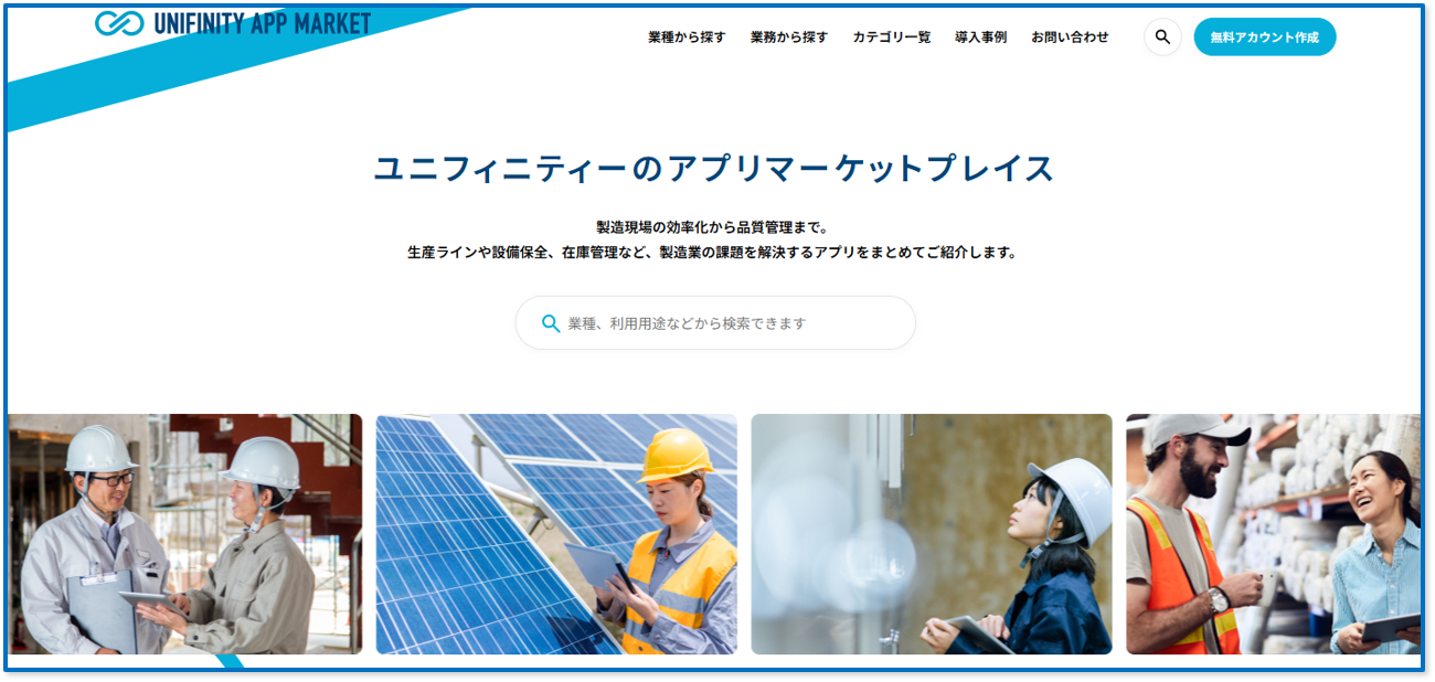 Unifinityマーケットプレイスは、現場での業務改善にすぐ活用できるアプリテンプレートを配布する公式サイトです。
