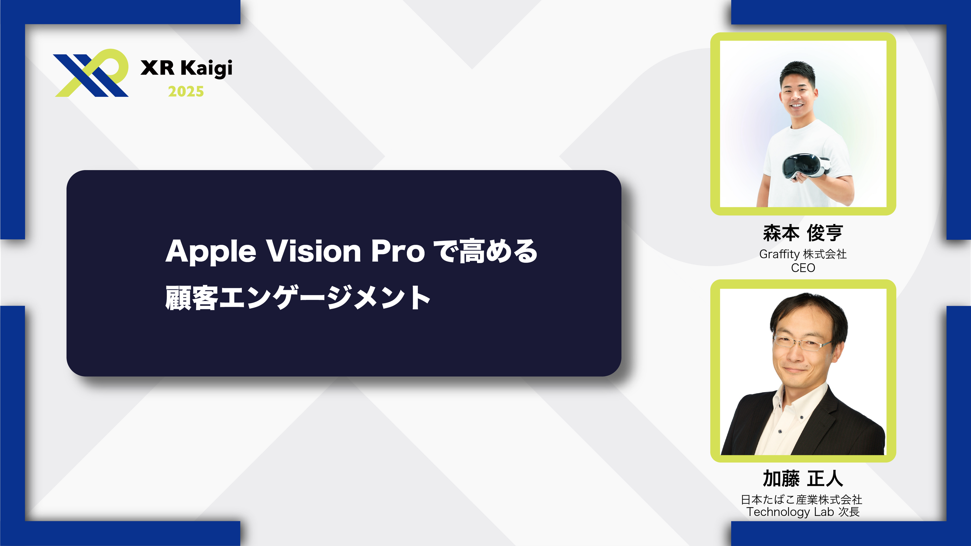 Graffityは「Apple Vision Proで日常に溶け込むユースケースをカタチに。」をコンセプトに、Apple Vision Proのアプリケーション開発を支援する「Graffity Spatial Lab」を運営しています。これまでにJT様との共同開発やプロスポーツチームとの連携など、数多くのApple Vision Pro向けコンテンツを開発・提供してまいりました。今回の「XR Kaigi 2025」では、これらの実績を通じて得られた「空間コンピューティングがいかに顧客エンゲージメントを高めるか」というビジネス視点の知見と、「コントローラーレスな操作における最適な体験設計」という技術視点のノウハウを、各セッションにて公開いたします。