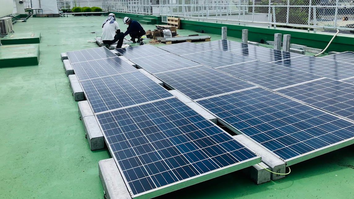 「みんな電力」では、こうした使用済み太陽光パネルの有効活用の必要性や、都市部での再エネ導入の推進と増加する遊休地を背景に、資源循環とエネルギーの地産地消の両立を目指して、廃校を活用した施設の屋上プール跡地にリユースパネルによる都市型太陽光発電所「じりじりリユース発電所」を整備しました。