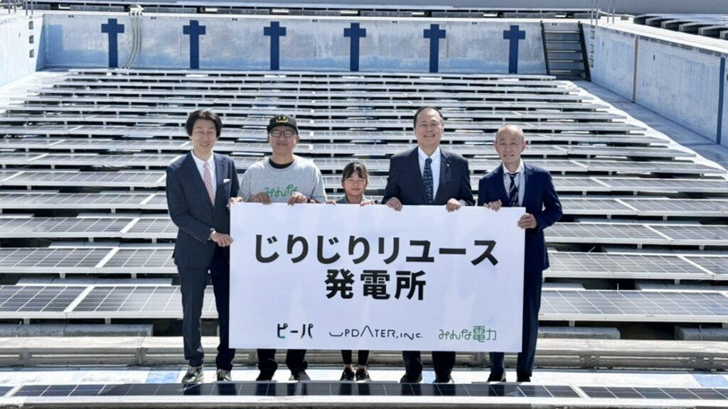 社会課題をオモシロく解決する企業、株式会社UPDATER(本社:東京都世田谷区、代表取締役:大石英司)が運営する再エネ100%の小売電力サービス「みんな電力」は、廃棄予定の太陽光パネルを再利用した都市型発電所「じりじりリユース発電所」(所在地:世田谷区池尻、HOME/WORK VILLAGE屋上プール跡地)の、世田谷区民を対象とした優先販売を2025年12月1日より開始します。