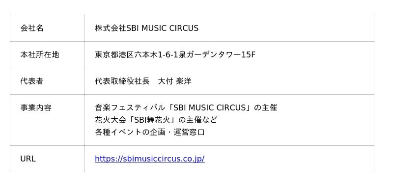 [画像2: https://prcdn.freetls.fastly.net/release_image/147733/61/147733-61-594814ecdecedf8bb625ba405f81c332-1920x453.png?width=536&quality=85%2C75&format=jpeg&auto=webp&fit=bounds&bg-color=fff ]株式会社SBI MUSIC CIRCUS