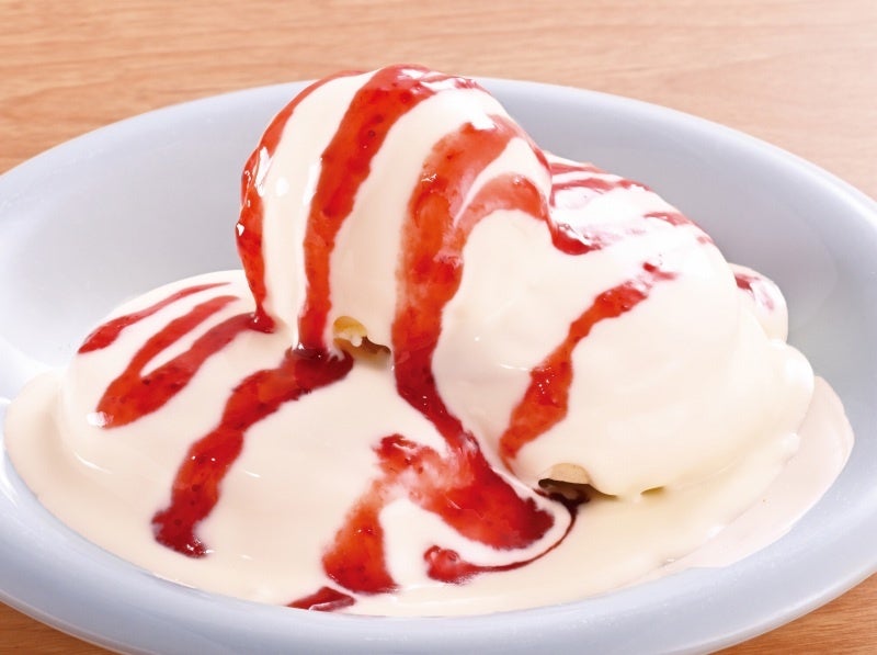 ふんわりパンケーキに“チーズ”と“ストロベリー”の濃厚ソースを合わせた大人のデザートです。