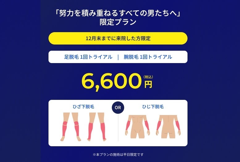 1.「努力を積み重ねる全ての男たちへ」限定プラン今回の就任を記念し、日々のビジネスシーンやプライベートで“誠実の身だしなみ”を整えたい方に向けた特別なトライアルプランです。