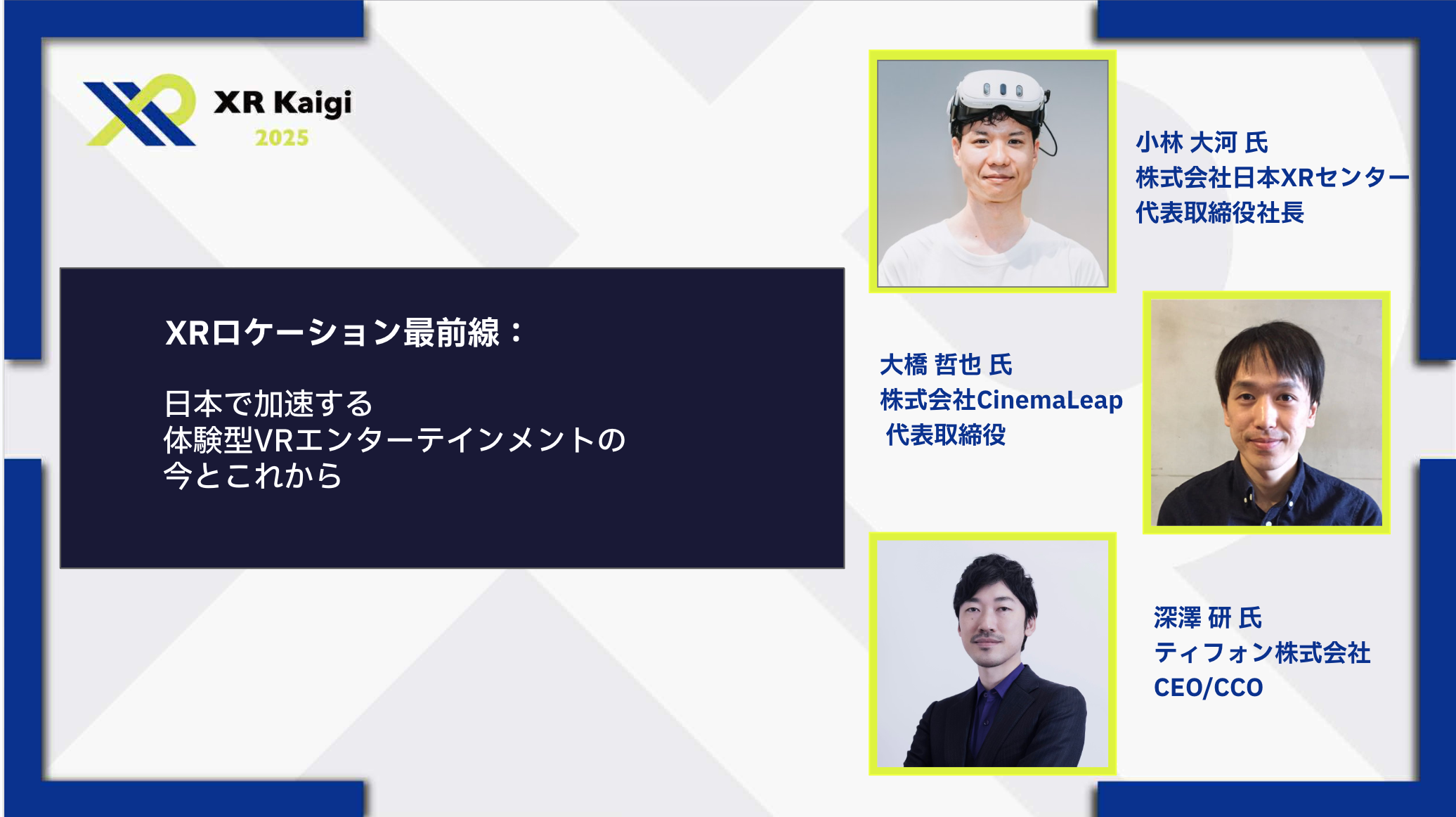 受賞に加え、日本XRセンターはXR Kaigi 2025内で開催される ロケーションベースエンターテインメント(LBE)に関する特別パネルディスカッション に登壇いたします。[画像6: https://prcdn.freetls.fastly.net/release_image/110387/43/110387-43-8bb410c76c1e4431125f27e0dea8f9cc-2072x1162.png?width=536&quality=85%2C75&format=jpeg&auto=webp&fit=bounds&bg-color=fff ]