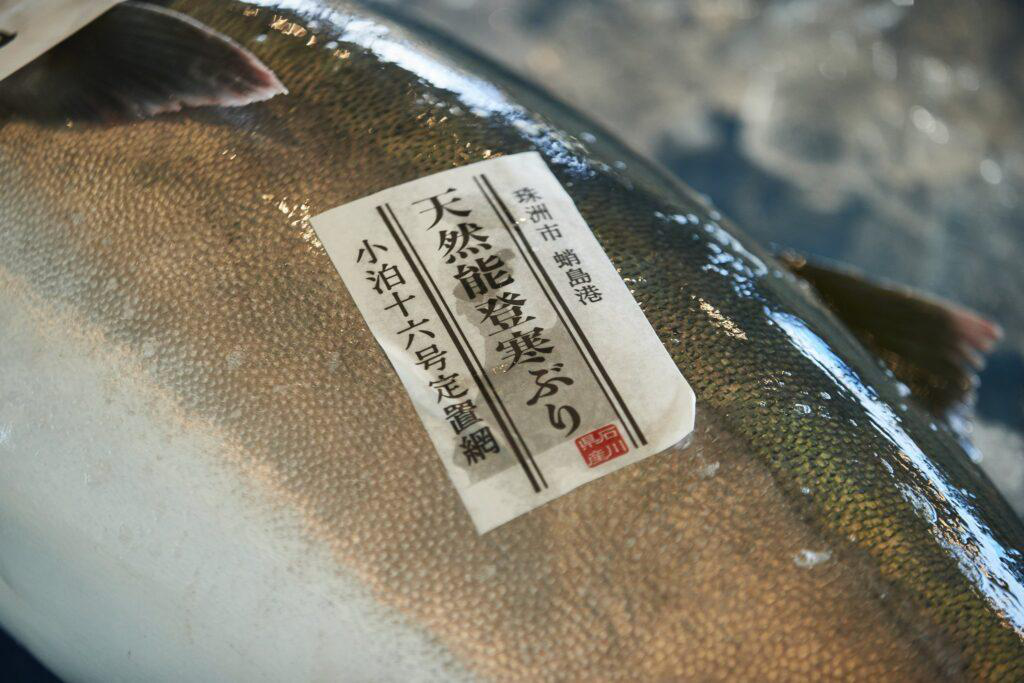 定置網の名前や水揚げされる港が記載された「天然能登寒ぶり」の証である白縁ラベルは、天然能登寒ぶりの基準である7kg以上のものを示す証として作られました。11月から翌年2月にかけて定置網で漁獲される7kgを超えるものを全て「天然能登寒ぶり」と呼んでいましたが、ブランドの質を高めるため、通称「白縁」を付けたものから「天然能登寒ぶり」と呼ぶこととしました。