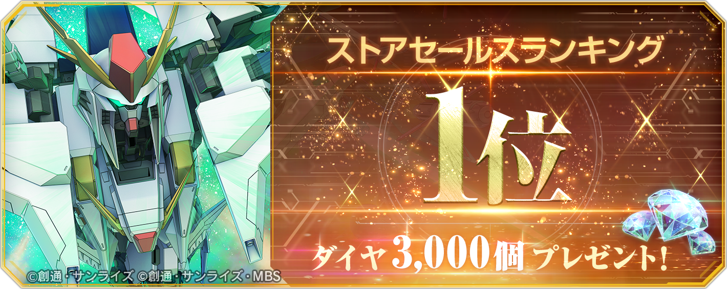 ストアセールスランキング1位を記念して、ダイヤ3,000個を全員へプレゼント!